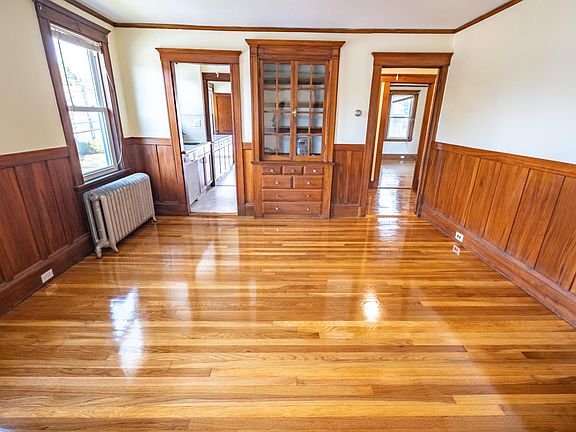 Renovated 1400 sq.ft 3 bedroom/1 bathroom apartment on 2nd and 3rd floor of 2 family house in Belmont. Refinished hardwood floors. 1st level: Living room with decorative fireplace and access to spacious enclosed front porch. Dining room with built-in china cabinet and wood trim. Kitchen with gas stove, dishwasher and pantry with additional cabinets. 2 good size bedrooms. Newly renovated bathroom. 2nd level: 3rd large bedroom. Brand new dedicated laundry and additional storage in the basement. 1 garage and 1 off-street parking space in front of garage. Shared side yard. 1 block from #73 bus line to Harvard Square. 10 minutes walk to Fresh Pond. 1 small pet could be considered on case by case basis. No smoking. Available Now. First, security and broker fee.