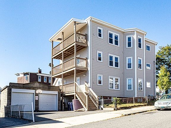 Amazing corner lot three-family home on a tree-lined street in a quiet residential neighborhood in Everett! Each unit offers separate utilities, large rooms with eat-in kitchens, ceramic tile bathrooms, hardwood floors (under carpet), two car garage and 5+ parking space. A huge, dry basement just waiting to become a man cave or workshop. Newer maintenance free vinyl siding are just a few of the great things this home has to offer. Beautiful views of Boston skyline. Conveniently located close to transportation, schools, shopping, parks and all major routes.