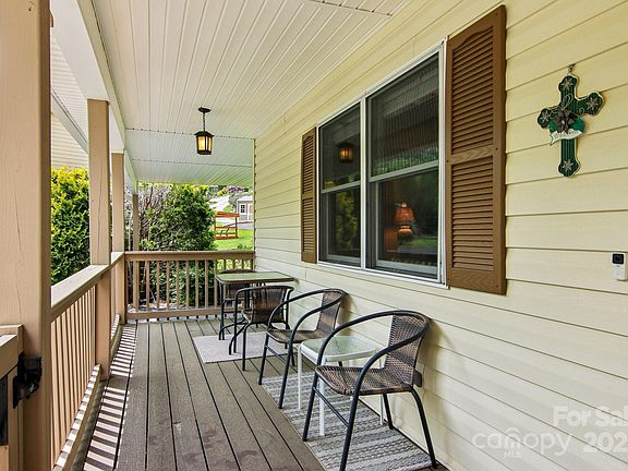 Charming 3BR/2BA one-level home just a short stroll to the heart of Maggie Valley! Enjoy easy, paved access & a level lot w/ city water/sewer. Fenced backyard is perfect for pets or play, covered front porch & an open side deck for relaxing outdoors. Inside, you'll find an open floor plan w/ wood floors, cozy gas fireplace, & a spacious kitchen featuring newer stainless steel appliances. The large primary suite offers generous closet space & a private bath. The laundry is next to the primary bedroom. The home has been very well maintained, & recent updates include new roof, water heater (2023) & new heat pump (25). Easy-maintenance siding & an attached carport complete this low-maintenance, move-in-ready home. Located in the Valley Creek Run subdivision, there are sounds of rushing Jonathan Creek & views of the surrounding mountains. Close enough to walk to restaurants or a short drive to the Blue Ridge Parkway. A side ramp offers easy accessibility as needed. Agent related to seller.