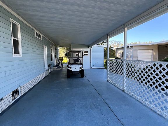 Beautifully maintained and mostly furnished home in a desirable 55+ active golf community. Features great curb appeal and an open, inviting layout. Enjoy peace of mind with a new roof (2024), updated plumbing, and newer flooring. Inside, you'll find a dedicated dining area and a spacious, comfortable living space. Home offers a double carport, large outdoor patio, and spacious shed for extra storage. Gorgeous lot with a pond view and no rear neighbors for added privacy. Move-in ready and perfectly located for resort-style living. Golf Cart is included - PLUS, one-year FREE golf membership included with your purchase of home from our sales office! Enjoy living in a welcoming, active 55+ community with amenities including a restaurant and pub, 2 pools, and a variety of activities. Call today to schedule a tour!