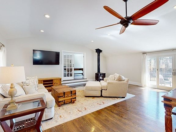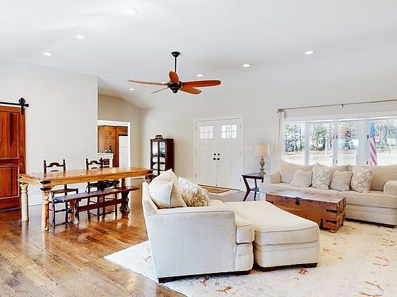 A modern farmhouse Dreamhome with charm of yesteryear & modern style and design. Open concept great room with entertaining bar has french doors to the step down family room offering sliders to the oversized rear deck overlooking the amazing 3.33 acres of sprawling open space. The ceilings soar and the deep rich walnut tone hardwood floors add warmth to this beautiful designer home. The country kitchen has Alder cabinetry, a center island, a deep farmer's sink and old style stove that tie in the farmhouse charm. The original living room offers large windows and decorative fireplace with elegant mantle. Upstairs the main bedroom has cathedral pine ceilings, hardwood floors and a walk in closet. There are 2 additional bedrooms and a newly renovated full bath.Located on the border of Harold Parker State Forest with trails for hiking & biking, ponds for kayaking, canoeing & fishing. Possible equestrian property.TITLE V REPORT SAYS 4 BEDROOMS THERE ARE 3 BEDROOMS