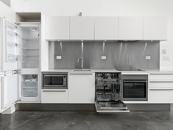 Built by the renown Salient Group this concrete 2 level loft Penthouse has massive 17' ceilings & expansive windows that look out towards the north shore. The views from the private rooftop deck are impressive & encompass the rail-town harbour to the north & the downtown core from all directions. Gas hook ups available for your roof deck BBQs. Inside polished concrete floors & a huge open canvass of wall space allows you to bring your designing ideas to life. A sliding door system on the main level allows you to designate a 2nd bedroom or office when you need it, or include the space into your living area for larger gatherings. Gated secure parking, bike room are included with this unit. If viewing on Zillow please call/email leasing agent