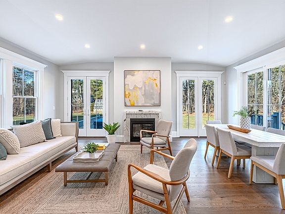 Discover luxury and privacy at this magnificent gated estate on a sprawling level 4.5-acre parcel, showcasing an extensive renovation in 2018, with a sophisticated 2024 addition of a family room, mudroom, and attached garage. Indulge with the 7 fireplaces warming the expansive living areas. Five bedroom suites include a first-floor option.The primary suite offers a cozy fireplace, walk-in closet, and a balcony. The marble-appointed baths feature radiant heated floors. Culinary enthusiasts will delight in the chef’s kitchen, with SubZero appliances, Wolf gas range, wine chiller and grand marble island with a breakfast bar. Entertain in the spacious living room, sunroom, and gracious dining room. A finished lower level provides versatile spaces including a gym, sauna, and playroom. Outdoors, enjoy the hot tub and private spaces, a fully equipped greenhouse, playhouse and also a 3 car detached garage. Featuring natural gas heat, town sewer/water and convenient to town, train and highway!