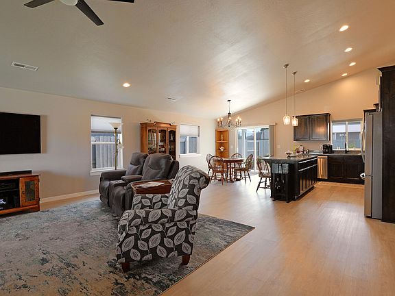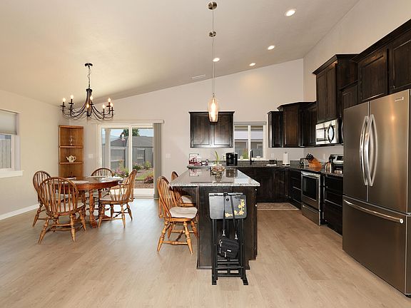 Welcome to this beautiful Energy Trust Oregon Certified home, built in 2022. This 3-bedroom, 2-bathroom residence offers 1,814 sq. ft. of thoughtfully designed living space with an open floor plan and a vaulted ceiling. The home features a blend of carpet and LVP laminate flooring, providing both comfort and durability. The modern kitchen is equipped with a large island, granite countertops, soft-closing cabinets, and ample storage, making it perfect for culinary enthusiasts. The primary bedroom includes a spacious walk-in closet, while the primary bath offers double sinks and a luxurious feel. Outside enjoy the covered patio, ideal for entertaining or simply relaxing. The .18-acre lot is complete with a garden and two apple trees, offering a touch of nature right at your doorstep. Additional amenities include a large 2-car garage and RV parking. With no HOA fees, this home provides the perfect combination of style, convenience, and freedom.