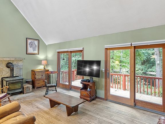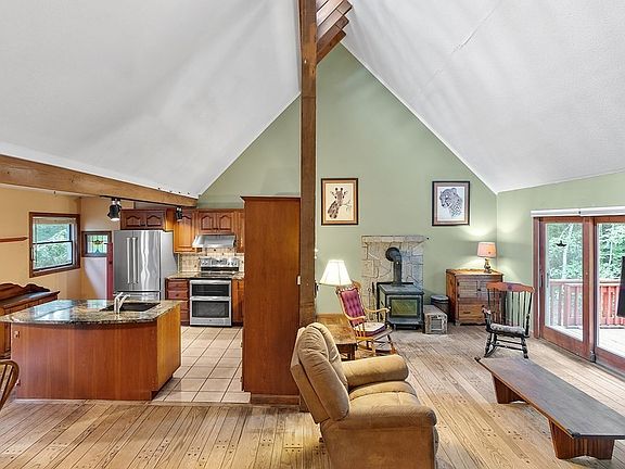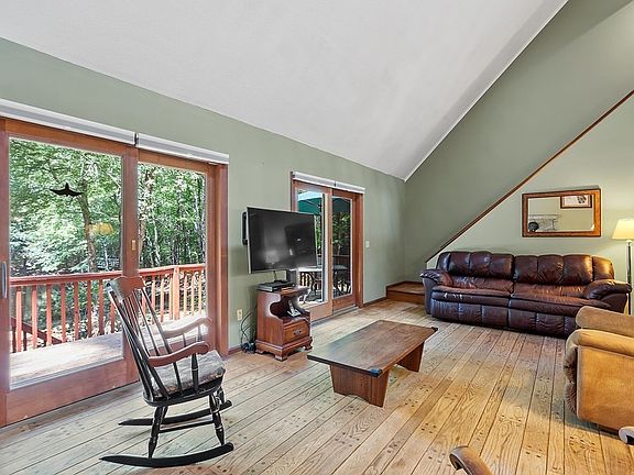 Enjoy the year-round delight of your own private pond with a bridge to the woodlands and waterfall. In the spring the sound of the waterfall is exciting. The sellers have used the pond for swimming, kayaking, fishing, and ice skating in the winter. Imagine your own private all-season retreat. This contemporary has beautiful water views from the great room, dining room, office, and first-floor primary bedroom. The cherry kitchen has Brazilian granite counters and is open to the dining room and great room. The clerestory windows in the soaring cathedral ceiling bring in extra light, and the wood stove in the great room warms the home during the winter season. The second-floor primary bedroom and office have their own views of the pond. The deck off the great room offers wonderful year round views and a lovely outdoor dining experience. Three-car garage. Ask about an additional 10 acres of land of wooded privacy. New septic system. First showings by appointment on August 25