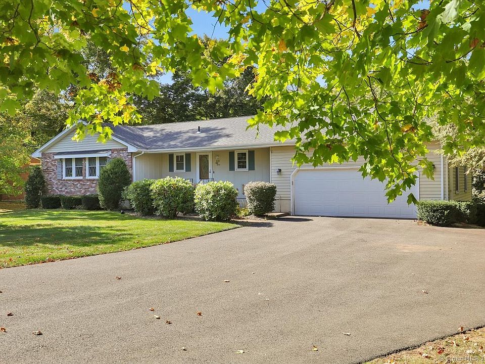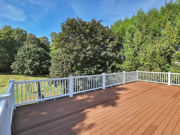This well maintained 3 bedroom ranch home with finished lower level and oversized 2 car garage is conveniently located on a level lot in South Glastonbury. Several updates include roof replacement, window replacement, maintenance free deck, sliders, septic system, stainless-steel appliances and flooring in the kitchen. All bedrooms have hardwood flooring and are located on the main level. The primary bedroom features a half bath and walk-in closet. Two more bedrooms and a full bath with tub and shower can be found in the main hallway. The kitchen, with white cabinets and newer stainless-steel appliances, is open to the dining area which has a new slider to the huge maintenance free deck! Off of the kitchen and dining area is the light filled, spacious living room with brick fireplace. A mudroom connects the garage to the main house. The lower level has been partially finished to include a recreation room with heat and fireplace. Sliders from the rec room lead to a stone patio overlooking the large level back yard! 7.3 acres of open space borders the rear yard. The oversized garage is set up for a mechanic. With lighting, chain fall hoists, shelving, storage cabinets and work bench, this garage is good for parking cars and working on projects! There is also additional paved parking for a camper, trailer etc. on the side of the driveway.