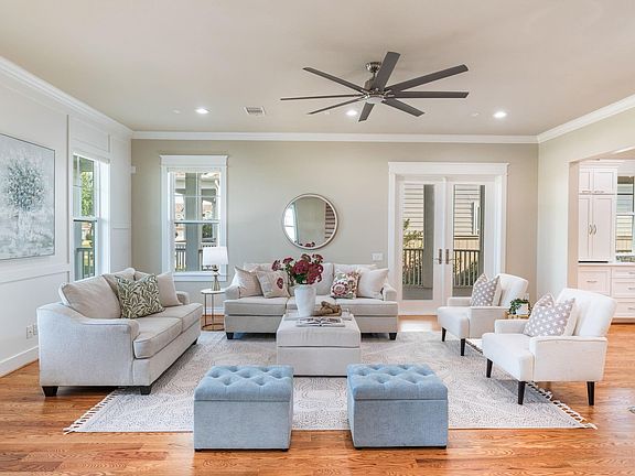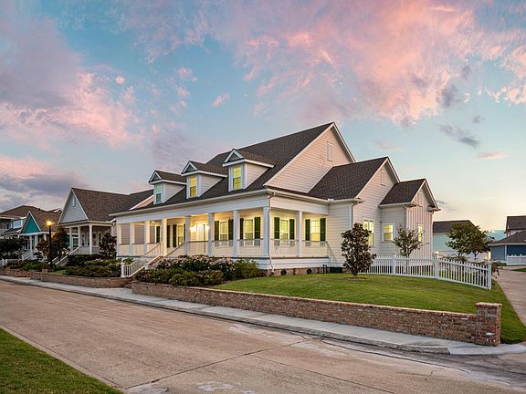 Welcome to an extraordinary residence in Galveston’s premier Evia community — where timeless charm meets modern luxury. Set on a coveted double lot with sweeping views of the Moody Golf Course, this 5/6 bedroom, 3.5 bath home offers a lifestyle designed for both relaxation and entertaining. The heart of the home is its chef’s kitchen, boasting double, side open convection ovens, an oversized island, and a butler’s pantry, seamlessly connected to the dining room. Two bedrooms with ensuite baths downstairs, plus a flexible office or fitness space, provide comfort and convenience. Upstairs, find a game room, three additional bedrooms, a full bath, and an expansive unfinished attic storage. Outdoor living is unmatched with a wrap-around porch, a screened-in porch with 6-seat hot tub, 6-hole putting green, and spacious 3-car garage. Upgrades include a whole-home generator, water softener, and 10-camera security system. All just steps away from Evia’s shopping and dining!