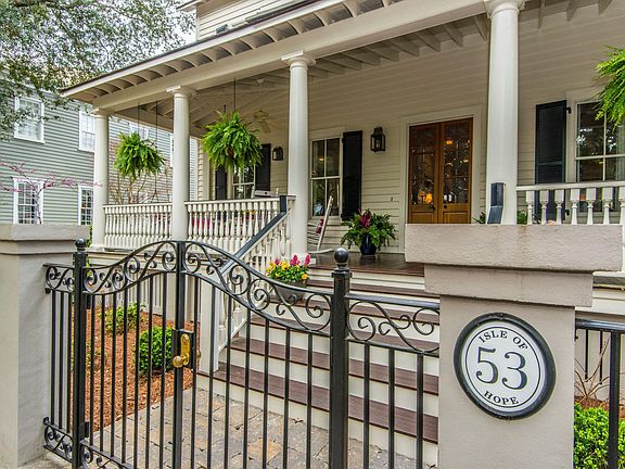 Open, yet formal best describes the layout of this quintessential I'on home. The classic elegance of the living and sitting rooms give way to large kitchen and dining areas, all set between full front and back porches. Entertain on any scale as your guests flow from the large kitchen island to screen porch to pool. Situated on a large corner lot (.22 acre) the yard retains a private feel enclosed by a iron work fence with masonry base and flanked off the back by a detached 2 car garage / carriage house guest suite. Generous brick pool surround with professional landscaping. Off-street parking for 6 cars (or basketball court) in addition to a 2-car garage is a rare find in any neighborhood. 2017 pool installation with 'wet edge' finish, self-cleaning, heated and cooled, and all controlled from your phone. Level back yard with detailed hardscape, pillars and pavers. 180 ft of fencing with four gates. 2017 irrigation system and landscaping. 2017/18 Trane HVAC units outside and air handlers inside. Updated tankless gas hot water heater for main house and electric tankless for carriage house. Great room built in cabinets, hidden TV and electronic components above a new gas fire place with outside vent. Sqft of 4385 includes 576 sqft finished carriage house bedroom with full bath (5th bedroom). Main house has master and 3 additional bedrooms on the 2nd floor. Need more space? See documents for architectural plan to add 3rd story renovation.