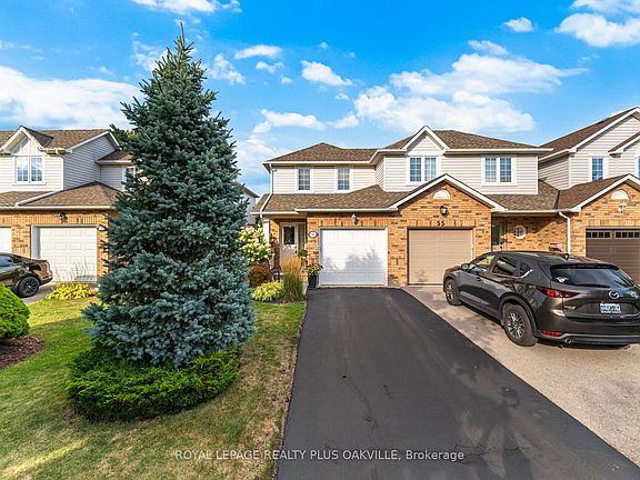 Meticulously maintained freehold end unit town by original owner! Linked only by garage and front bedroom to neighbour. Thousands in mature landscaping front and back giving you complete privacy and enjoying nature! Open concept layout between great room and kitchen! Upgraded bay window in dining room! Gas fireplace and upgraded plush broadloom throughout. Ideal for downsizers or start up with 2 large bedrooms and adjoining ensuite! Large closets with organizers. Recent updates include roof shingles 2014, garage door & opener, Carrier air conditioner, Kohler toilets, upgraded indoor & outdoor light fixtures and professionally painted throughout. Professionally finished basement with large rec room and plenty of storage! Impeccably maintained! Walk out to deck from living/dining! Inviting Front walkway interlock and stone porch! Gardeners delight with blue spruce tree, cherry tree, cedar trees, lilac tree, Japanese maple, snowball tree and lots of beautiful hydrangeas!
