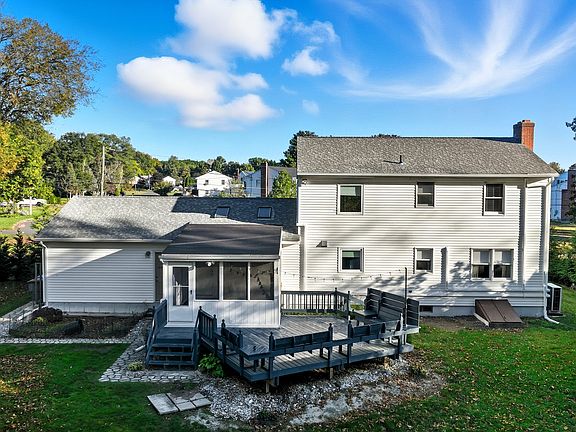 Expect to be impressed with this meticulously maintained vinyl-sided Colonial, located in beautiful neighborhood! This attractive home blends comfort & modern amenities, featuring two heating systems- a gas-fired baseboard boiler & heat pump mini-split system providing efficient heating & cooling. The updated quartz kitchen impresses w/stainless steel appliances and a designer breakfast bar that flows into the open floor plan ideal for everyday dining & entertaining! The primary bedroom suite is a true retreat with a walk-in closet & luxurious spa-like bath showcasing a free-standing soaking tub & custom-tiled walk-in shower. The inviting living room features a cozy fireplace, while the crown molding & recessed lighting add an elegant finishing touch. Enjoy outdoor living at its finest w/professional landscaping, private backyard, oversized deck, enclosed porch, remodeled front porch & paver patio! Conveniently located near Wallop School Park, shopping, restaurants, and major highways-this home truly has it all!