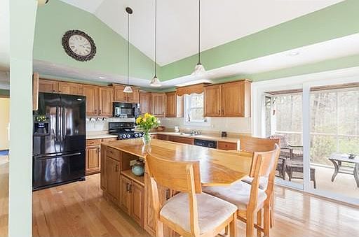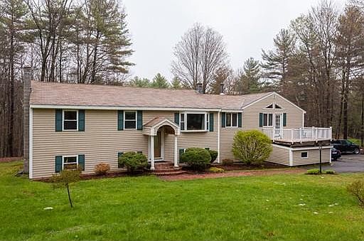 Open House Sunday May 15th from 12 to 1:30pm. Welcome to this expansive 3-4 bedroom, 2 full bath home located just minutes to major highways, shops, restaurants and the commuter rail to Boston! The main level of this move in condition home features and eat in kitchen with center island, vaulted ceilings and sliders to a beautiful screened in porch. Dining room with picture window, library, 3 bedrooms, full guest bath and large family room with wood stove, cathedral ceilings and sliders to a private deck complete the main living level. The walk out lower level includes a private master suite with a wood stove, tons of closet space and full bath. Laundry room, semi finished bonus room, workshop, storage area and 2 car garage. The private grounds and multi level decking are just a few more features of this one of a kind property.