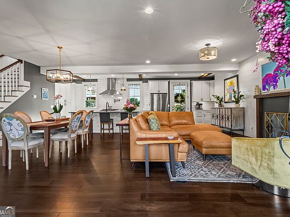 Welcome to 53 Maple Street, a bright, sophisticated, and magazine-worthy residence in the heart of Roswell's Historic District. This custom home blends timeless design with smart upgrades and unmatched walkability to Canton Street, Roswell Square, Vickery Creek trails, and the Chattahoochee National Park. Situated on a beautifully landscaped corner lot, the home offers multiple outdoor living spaces, including a front porch with a charming swing bed, a private courtyard with a water feature, upgraded turf, stone pavers, and landscape lighting on WiFi timers. The interior is equally stunning, filled with natural light and styled with designer lighting, hardwood and tile flooring throughout, wood-beamed ceilings, shiplap accents, and casement windows. The chefs' kitchen features Silestone quartz and charcoal soapstone countertops, a large island with farmhouse sink, 48" KitchenAid Pro gas range with griddle, vented hood, built-in refrigerator and dishwasher, custom pull-out pantry shelving, and utility storage under the stairs. The main-level primary suite offers courtyard access and a spa-style bath with a freestanding tub, frameless glass shower with four heads, quartz-topped vanities and premium fixtures. Upstairs, you'll find four generously sized bedrooms, including a well-appointed en suite-each enhanced with designer lighting and custom Bali window treatments. A versatile loft retreat just off the secondary bedrooms provides the perfect space for guests or family to relax, unwind, and feel right at home.The oversized two-car garage features epoxy floors, a built-in wash sink, adjustable shelving, Tesla/NAC charger, and WiFi-enabled garage doors. Smart home features include Google Nest and Camius motion-detecting cameras, WiFi-enabled lighting and shades, keypad entries, tankless water heater scheduling, and spray foam insulation over the garage. Every detail in this home has been thoughtfully curated to inspire-from everyday functionality to swoon-worthy design moments-making it one of Historic Roswell's most elegant and turnkey opportunities. Boutique Design. Premier Location. Effortlessly Roswell.