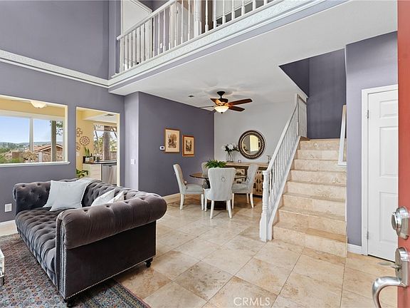 Experience timeless elegance and serene living in this elevated 4-bedroom, 3-bathroom home, perfectly positioned to capture sweeping hillside and canyon views. Soaring vaulted ceilings and an open floorplan create a bright, airy atmosphere, enhanced by over 30 windows that flood the home with natural light. The interior features classic travertine and wood flooring, offering a refined and enduring aesthetic throughout. A desirable downstairs bedroom and full bathroom with a walk-in shower provide comfort and convenience for guests or multi-generational living.