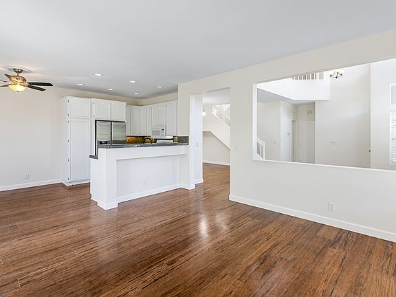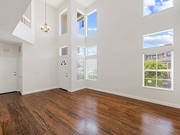 Take in the Marina Ocean cross breeze all summer long, while you thrive in the heart of Aliso Viejo! Your furry friends are welcomed! All appliances and frontyard landscaping are included in this bright and airy end unit nestled in the prized Cantora community! This recently updated 3 bedroom, 2.5 bathroom home is move-in ready with an open floor plan, soaring ceilings and plentiful natural lighting. The home features newly installed premium vinyl flooring in all 3 bedrooms and fresh interior paint throughout the entire home. The kitchen includes a brand-new Samsung refrigerator, Frigidaire dishwasher, recessed lighting, granite countertops and breakfast bar that seamlessly blends into the family room with a perfectly positioned fireplace that adorns the space. The home also features a newer HVAC, copper fitted water heater, and newer washer/dryer. As you enter the home you're greeted with an expansive space combining both the dining area and living room. The main floor living areas are open, warm and welcoming, perfect for hosting all your family gatherings. To the side of the family room sliding doors take you to your private enclosed backyard patio with brick planters, drought resistant plants and fertile irrigated soil. The staircase with illuminated step lighting transports you to the serenity of the spacious master suite with sizable closet, dual vanities, and walk-in shower. The generously sized secondary bedrooms are just adjacent to the hallway's full bathroom. The attached two car garage provides direct access to the home and guest half bathroom upon entering. The garage is fitted with an abundant amount of storage, cabinetry along the wall and ceiling mounted racks. Cantora community amenities offer a resort style pool and clubhouse, wider streets and plenty of parking spaces. Close proximity to highly rated schools, Aliso Viejo Town Center, Woodfield Park, entertainment, dining, shopping, hiking, the 73 toll road and so much more!