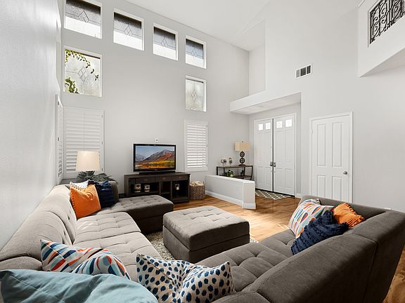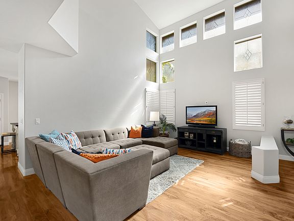 Charming single family home in Foothill Ranch! This 3 BEDROOM + LOFT home is the one you've been waiting for! Situated on a wide street, this home features a formal living room, dining room, family room w/fireplace, and a newly remodeled downstairs bath. Cathedral ceilings offer warm, natural light. Large kitchen with center island with bar seating, granite counters, and tons of cabinet space. The upper level features a master suite, dual vanities and a walk-in closet, as well as 2 secondary bedrooms, guest bathroom and large flex space that can be used as an office, play room, etc. Wood flooring on lower level. The exterior features a custom putting green, patio cover, and room for outdoor dining, entertaining, or just relaxing. 2.5 car spacious garage. Walk to parks, trails, shopping, dining, and entertainment. 12 month lease. Existing furniture negotiable for a one time fee. No smoking, inquire about number of pets. Max 3 cars, one in garage, two in driveway.
