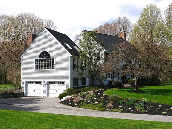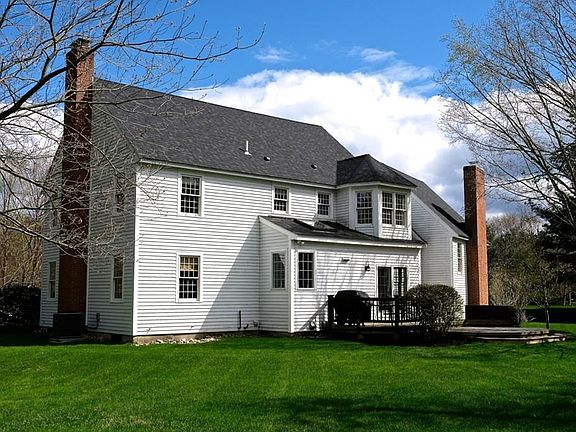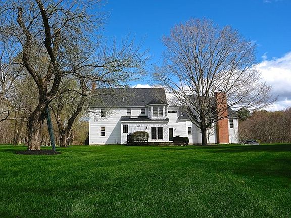 Meticulously maintained classic New England colonial set on 2.8 private acres on a cul-de-sac at the end of a quiet country lane. This spectacular home features a true gourmet kitchen with high end Wolf appliances, double oven, a wet bar, custom cabinets and a massive center island topped with black leathered granite. Gleaming hardwood floors throughout the first floor. Enormous sun filled 23 x 21 great room with soaring cathedral ceilings and a floor to ceiling field stone fireplace. This home also offers a cozy den with corner fireplace and built in shelves, first floor office, laundry, and a large formal dining room. Upstairs features four bedrooms and a master bath with a double size Jacuzzi tub. Large 2 car garage. This home has had significant recent upgrades including a new roof, new central AC installation, new carpeting and freshly painted interior. The yard has an over-sized shed, apple trees, mature plantings and miles of hiking trails out of your private backyard.