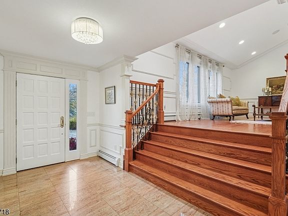 CLASSY & TIMELESS 5-Bed 3.5-Bath CUSTOM HOME boasting 3600+ sq ft. Located in Livingston's most sought-after RIKER HILL neighborhood amongst multimillion-dollar homes. Perfectly situated on over 1/2 acre POOLABLE and PRIVATE lot backing to protected Green Acres land offering serene & wooded views- Yet, convieniently located around the corner from Elementary school & NYC Bus. The inviting foyer opens to a HIGH CEILING Living Room and Formal Dining Room with an easy flow into a chef's EAT-IN kitchen featuring SS Appliances, a large center island and TWO wine coolers. DESIGNER Appliances include a SUB-ZERO refrigerator, CAPITAL professional-grade range, high-performance exhaust hood and MIELE DW. The open layout extends to DUAL Family Rooms with walk-out to an expansive 3,000+ sq. ft. Custom PAVER Patio - ideal for ENTERTAINING. Upstairs hosts all FIVE bedrooms, including a luxurious Primary Suite with two walk-in closets and a SPA-like bath featuring RADIANT heated floors, heated towel rack, Air Tub & Large Stall shower + a Bright En-Suite PRINCESS Bedroom with its own full bath and Double Outfitted Closet. Extra Features: Custom moldings, architectural details, outfitted closets in every bedroom, second-floor laundry, whole-house water filtration & softening system, main-level garage with mudroom & large paver circular driveway. Enjoy the warm elegance of this home - All within a top-rated school district! Move Right In and Enjoy Life in Livingston!