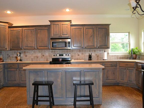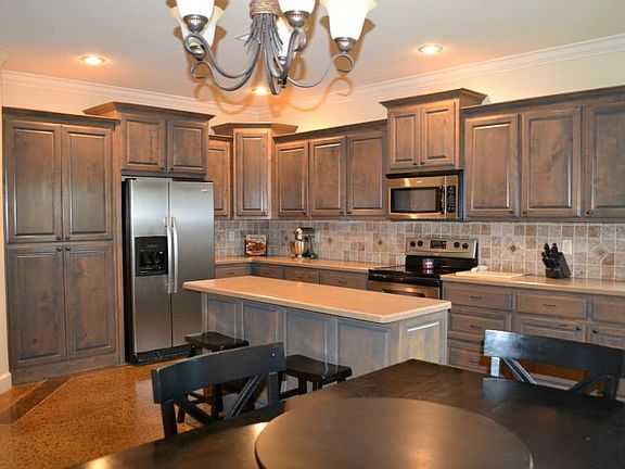 Beautifully maintained custom home with open floor plan. The living room invites you to snuggle up by the fire in the beautiful rock fireplace. The eat in kitchen has custom cabinets, solid surface countertops and stainless steel appliances. Master bathroom has a jetted tub, double sinks, and his and hers walk in closets. This home has amazing stained concrete floors throughout, well insulated, is on a large corner lot, and fully fenced.