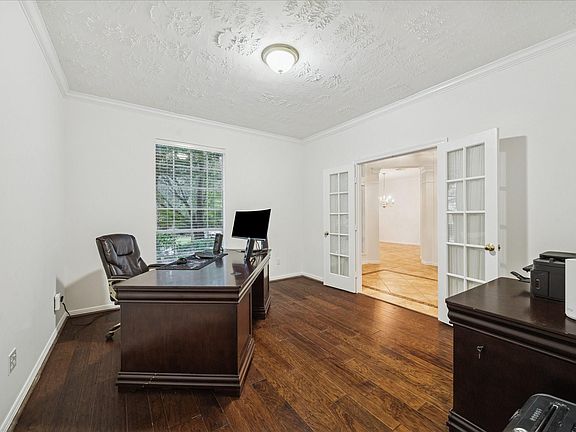 Large backyard deckHome officeNeutral tile floorsBrand-new neutral carpetFormal diningStudy with wood floorsSoaring ceilings