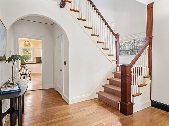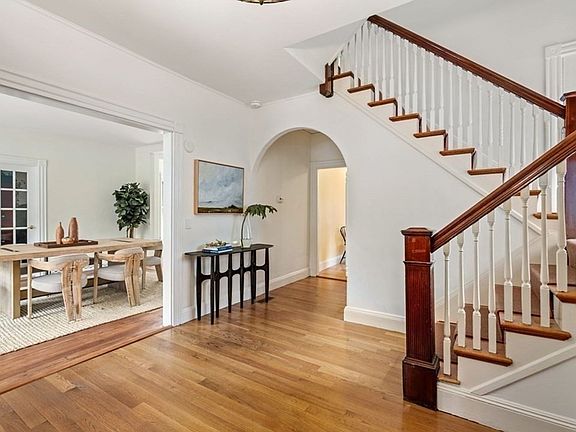 Step into this charming Newton Centre Victorian home built in 1895 that will captivate you with its warmth and sophistication. Imagine gathering with friends on the front porch and instantly feeling a sense of belonging in this fantastic neighborhood. This 5 bedroom home features generously proportioned rooms, high ceilings, large windows, and period details throughout.The entry foyer opens to the gracious dining room and family room with a wood burning fireplace and hardwood floors.The remodeled kitchen with stainless appliances and breakfast area opens to the deck overlooking a picturesque yard leading to the expansive Weeks Field through your very own private gate! Completing the first floor is a spacious office perfect for those working from home.The second floor boasts a romantic primary suite with stunning views plus 2 additional bedrooms and a full bath.There are 2 lovely bedrooms, a full bath and a bonus room on the third floor. Finished lower level with direct access to yard.