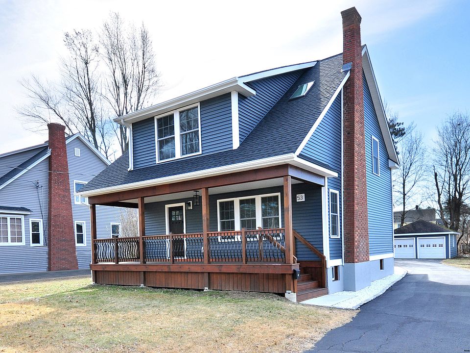 Step into a realm of sophistication and functionality as you enter this impeccably built, state-of-the-art three bedroom home! Welcome your guests on the expansive covered front porch which leads you gracefully to the two story foyer and the warm and open layout filled with natural light. The sleek kitchen is a chef's delight, featuring stunning new cabinetry with soft close drawers, extensive quartz countertops and island/breakfast bar, tile backsplash, stainless steel appliances, high end pendant and recessed lighting and an eat-in area with a slider leading to the back porch. Entertain in the inviting living room where a cozy fireplace beckons relaxation, while seamlessly connecting to the adjacent dining area, creating the perfect setting for gathering with loved ones. A gorgeous half bath completes the first level. At the end of your day, retreat to the luxurious primary suite with its sparkling, custom surround tile bath and the blissful escape it offers. Two additional bedrooms, a breathtaking full bath and a laundry room complete the second level in style. Every aspect of this meticulously constructed residence exemplifies quality and craftmanship. Tremendous value is found in the pristine finishes throughout, including new roof, windows, vinyl siding, electrical, plumbing, gleaming hardwood flooring, designer fixtures, new natural gas furnace, central air, on-demand hot water heater and a two car garage. This home is exceptional. Come on...Let's take a look inside!