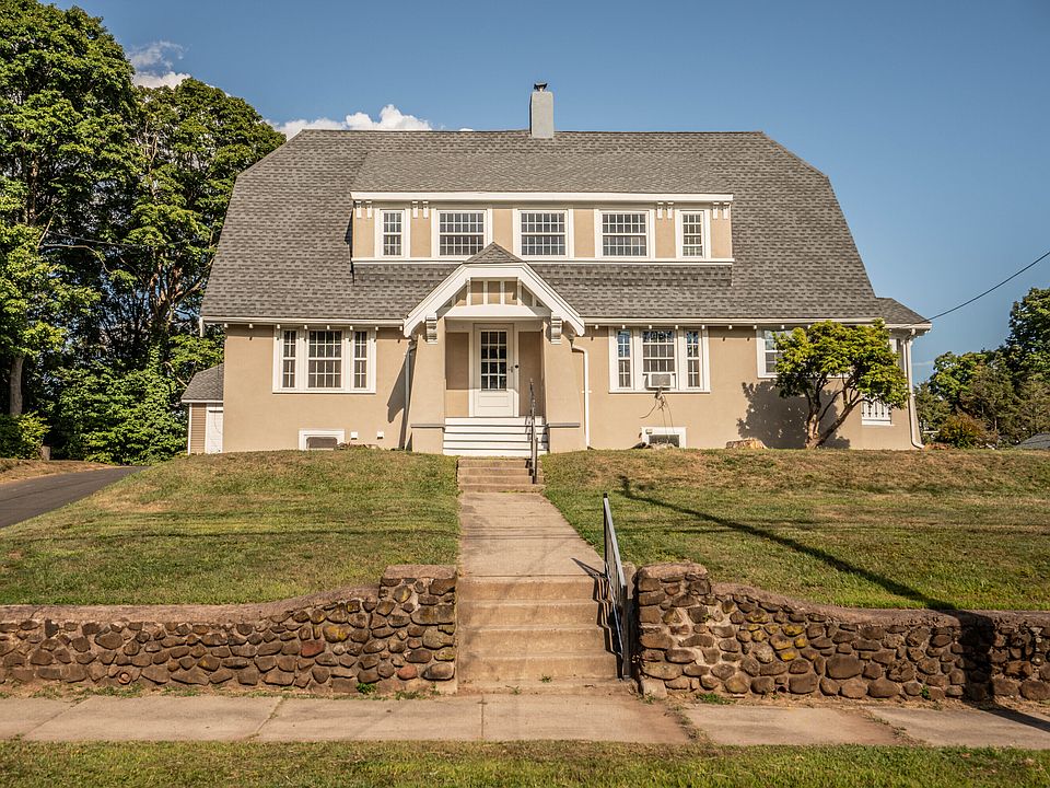This stunning 4/5-bedroom Colonial is truly one-of-a-kind! From the moment you arrive, you'll be impressed by the character, charm, & thoughtful updates throughout. The home sits on a beautifully maintained lot with classic stone front walls, a large 2-car detached garage with a workshop & newer siding. The outdoor space is perfect for entertaining, featuring a new backyard stone patio, lovely landscaping, & a stucco exterior that adds timeless appeal. Step inside to a gorgeous, remodeled kitchen with quartz countertops, custom cabinetry, new flooring & stylish backsplash. The main level offers original hardwood floors in great condition, along with striking coffered ceilings in both the formal dining & living rooms. The dining room includes classic built-ins & opens to a heated four-season sunroom that provides access to a charming side porch. The living room features a fireplace with a wood stove insert, adding both warmth & ambiance. Two rooms on the first floor, both with closets, offer flexible use as bedrooms, guest rooms, and/or home offices. Upstairs, you'll find a spacious landing area - perfect for a sitting nook or reading space - leading to three oversized bedrooms. Additional highlights include Newer gas heating system, Remodeled bathrooms & new windows. Located within walking distance to CCSC, this home blends old-world craftsmanship with modern conveniences. If you're looking for space, style, and timeless character - this home delivers!