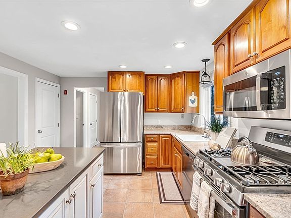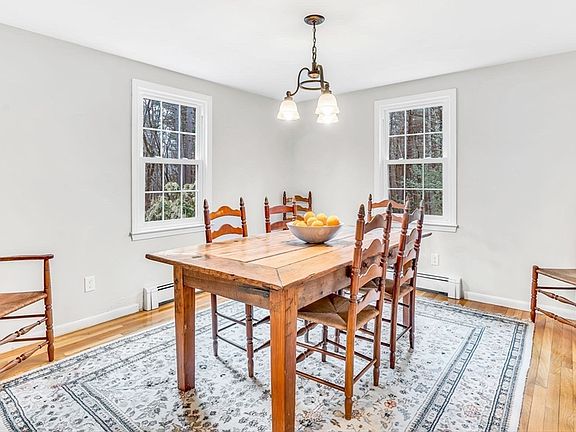 ENCHANTING SETTING! This charming Colonial is tucked away from the quiet street it resides on! The colonial floor plan is traditional for the year built & offers the perfect amount of designated spaces for a family to absolutely thrive in. The living room is inviting, showcasing a fireplace & a wall of built in bookcases! Enjoy entertaining family & friends on the rear deck which overlooks the wooded backyard & allows all to enjoy the bucolic haven that only this backyard provides! The dining room connects to the kitchen & boasts a center island, gas range & plenty of cabinet space. A 1st floor home office could also make a fantastic guest room should 1st floor accommodations be required. Bright & cozy, a family room near the kitchen has great New England style featuring wood trim walls & a wood burning fireplace! The 2nd floor has four bedrooms, including a spacious ensuite primary with a walk-in-closet! Just a five-minute drive to Carlson Orchards! Great commuter location!