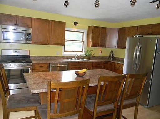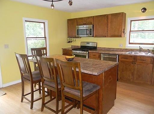 - Kit Dscrp: Kitchen Island, Stainless Steel Appliances, Flooring - Laminate, Remodeled, Countertops - Paper Based, Gas Stove