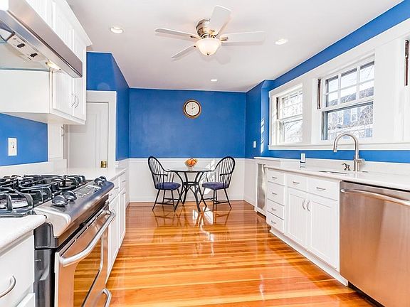 Classic Center Entrance Colonial situated on a beautiful tree lined street in a well sought after neighborhood! This bright & sunny home was recently painted throughout and the wood floors refinished. Kitchen, previously renovated with silastone counters & stainless appliances has a breakfast area & separate mud room for easy access to the rear deck & yard. In addition, butler's pantry features beautiful glass door cabinets & provides access to the Dining Room clad in timeless wainscoting and French doors. Living Room boasts a wood burning fireplace & beamed ceiling. Off the Living Room is a heated sun/family room with three walls of windows. Second floor features Master Bedroom & Bath with walk in closet plus two additional Bedrooms & an Office. Basement has a cedar closet and rear access to the Yard & 1 car Garage. Yard is nicely landscaped and well maintained. Close to Payson Park, Boston, Cambridge, public transportation, major highways. Many restaurants and shops nearby.