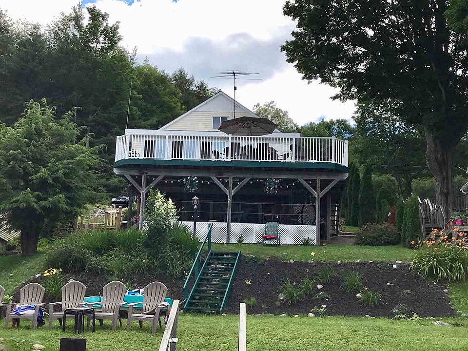 Lakeside: Enjoy overlooking stunning lake and mountain views with 50' lake frontage on The Great Sacandaga Lake! 3BR 2BA cottage in excellent condition and great lake location on dead end road! Open floor plan kitchen-living rm to sun rm and deck! Extra space for guests or entertaining in the walk out basement with family room/studio w/kitchenette that leads to lower deck, outside shower & lake front yard with 32' dock. Furnishings negotiable.