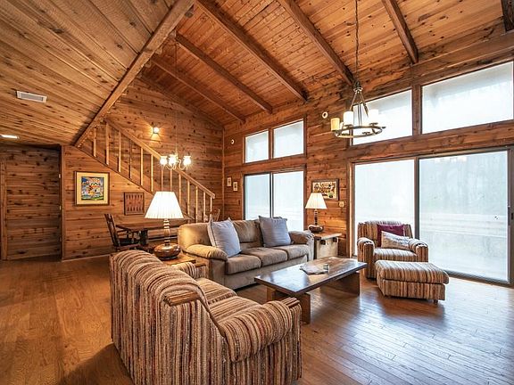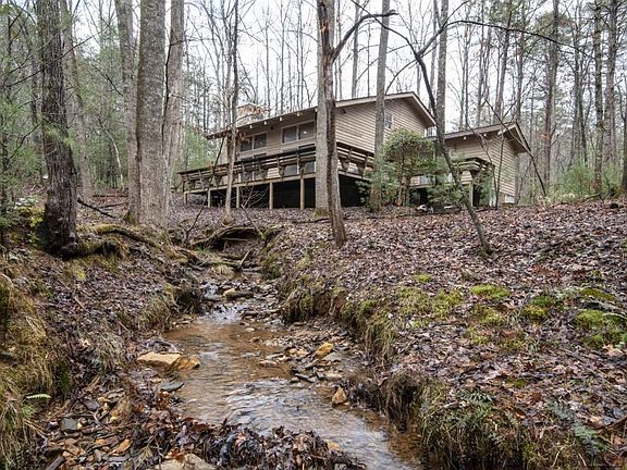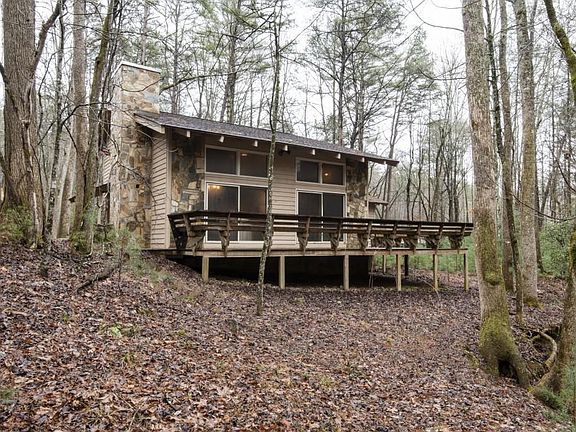 If you are searching for a cabin in the woods, this Skylake fixer upper has so much potential! Enjoy the sounds of the creek from the oversized deck making this an amazing mountain retreat. 10+ ft tongue and groove ceiling with exposed beams and beautiful stone, wood burning fireplace. Large windows looking out to the deck allowing for a lot of natural light and hardwood floors on main level. Renovated kitchen with granite counter tops, farmhouse sink and stainless steel appliances. Master on main with sliding door to back deck. 2 upstairs bedrooms with loft overlooking the living area. Exterior needs a lot of TLC. All furnishings transfer with sale except furniture piece by door and personal items. Enjoy the best of mountain living in Skylake with 2 beautiful lakes for fishing or kayaking, York falls, over 14 miles of walking and hiking trails, swim/tennis, playground, and more.