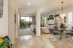 Move to this single story condo with views from just about every window! Exceptional floorplan with unusual 9' ceilings (most all rooms)-kitchen with nook, dining room, living room w/ fireplace, large den/office (could be 3rd bedroom) interior laundry and 2 oversized master suites with large closets, large 2 car garage and private patio w/storage closet are floorplan highlights. Enjoy living 10 minutes close to everything - world class shopping, beaches, golf courses, the airport and business centers and more. No Mello Roos