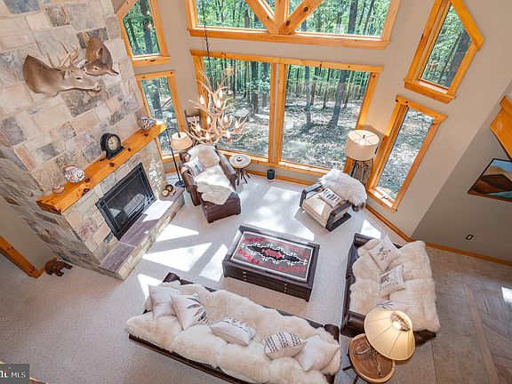 Charming 4BD/3BA Custom Mountain Retreat in Exclusive Gated Community Nestled on a serene 26.822-acre lot, this custom-built turn-key, fully furnished, mountain retreat offers unparalleled privacy and breathtaking all-season mountain views. The home features a main-level laundry room and pantry for added convenience. The updated kitchen boasts granite countertops, stainless steel appliances, and skylights that bathe the space in natural light. Custom windows frame stunning vistas of the West Virginia mountains. The living area is highlighted by vaulted ceilings, exposed beams, and a grand floor-to-ceiling fireplace. The main level also includes a full bathroom and a primary bedroom with an ensuite featuring tile floors and double walk-in closets, plus access to one of two screened-in porches. Upstairs, a bright loft with wood floors overlooks the elegant living room and offers magnificent views through large windows. The lower level provides three additional bedrooms, a full bathroom, and a spacious living area with a propane stove, perfect for entertaining. Outside, the property includes a beautifully wooded yard with both flat and sloped areas, attracting local wildlife. Additional features include gutter guards, a whole-house generator, and a low-maintenance paved driveway. All systems in home are new! Don’t miss the chance to own this meticulously maintained mountain retreat. Schedule your appointment today!