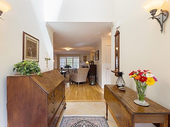 Impeccable end unit awaits you. Owners have beautifully made top of the line upgrades throughout their home. Lower level fully finished with large family room, bedroom or den/office and full bathroom adding an extra 600+ square feet to the living area. Crown molding and hardwoods along with all updated appliances. Sophisticated design elements bring this unit above and beyond. Attention to detail shows in every room. Home owners spared no expense on improvements as you will see. Private deck abutts wooded views very peaceful. Complex is 55 years of age and over.