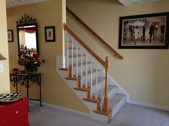 Beautiful tri-level townhouse in premium move in condition, large windows throughout with plenty of natural light, large eat-in kitchen with slider to deck, mud/laundry room leads to garage. Bedrooms have large walk-in closets, walk-up attic off master has plywood floors with lots of additional storage. Fully finished walk-out basement has laminate floors, half-bath, cable ready, electric fireplace that stays with the house, and cabinet with small refrigerator and microwave; seller replaced all faucets, toilets, and many other upgrades - this home is immaculate with plenty of space for a family. White venetian blinds in living room, kitchen and all upstairs rooms stay.