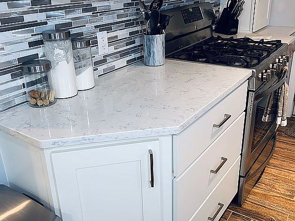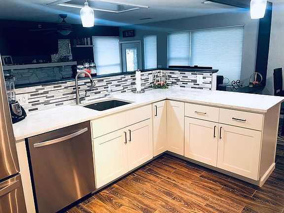 Call or Text (309) 678-8010 to set up an appointment! From the newly remodeled open layout to the backyard paradise overlooking the country club lake, this home is truly captivating. The large dock offers plenty of sitting area to relax and enjoy the vibrant sunset views. This home's kitchen is a modern update with quartz countertops, stainless steel/marble backsplash, and shaker cabinets with soft close doors. The dining area steps down into the cozy Living room filled with natural light from three walls of windows! Let the beautiful stone fireplace warm your cold winter nights or sip your coffee on the back porch that you have access to straight from the master bedroom. The master bedroom also has a large walk in closet with plenty of space to organize your clothing. The second bedroom features a French door entrance and a barn door opening into a beautiful half bath. And let's not forget about your prized autos. They will fit comfortably into the detached, two car garage that is large enough to have a workshop area, as well. If you are ready to make this little piece of paradise yours, call or text today to schedule a time to see it in person.