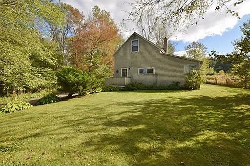 Farmhouse with a view! Country living awaits. 2 bedroom 1.5 bath home with office that could be a third bedroom includes hardwood floors, vaulted and beamed pine ceilings in the living room along with a wood stove. First floor laundry off the large eat in kitchen with plenty of counter space. Large master with private balcony. New entry doors and storm doors. Huge barn/garage with an office, 1/2 bath, propane heat stove, electricity, air compressor lines, upstairs storage and poured concrete floors. Nice size yard and patio to enjoy those summer days.