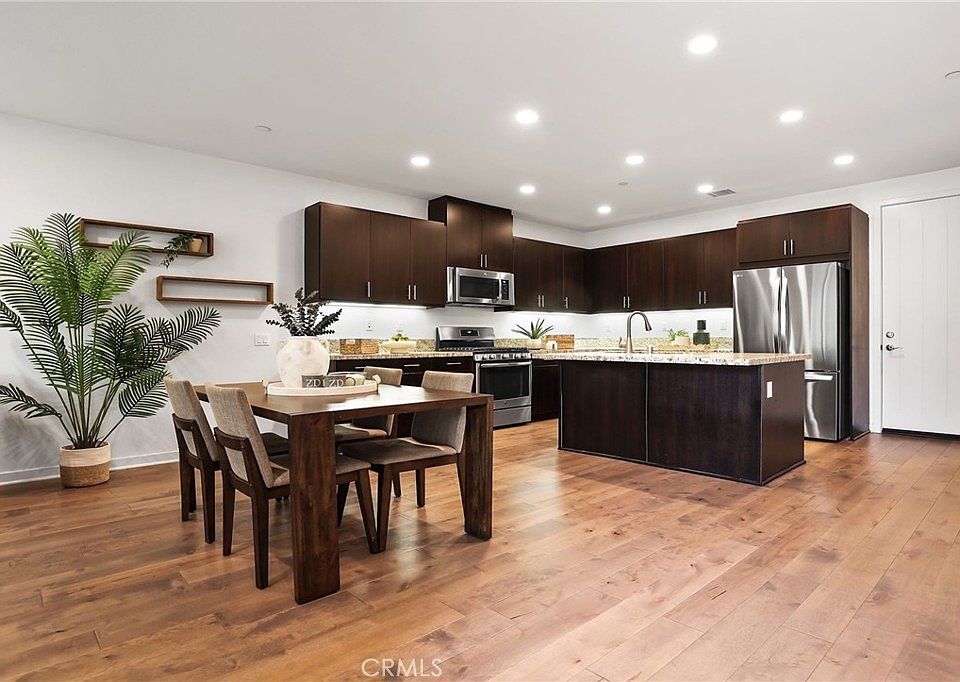 Beautifully Upgraded, Great Floor Plan, Light & Bright Location! Featuring 3 Bedrooms and 2.5 Bathrooms this Spacious, Turnkey Baker Ranch Residence has everything you have been looking for and more. Neutral Toned Wood Flooring greets you upon entry and runs throughout the entire first floor. The Warm Ambiance of the Open Concept Great Room is highlighted by Recessed Lights, Custom Window Coverings and an Abundance of Natural Light. The Gourmet Kitchen includes Stainless Steel Appliances, Granite Counter Tops, Under Cabinet Lighting, Recessed Lighting, Brush Nickel Fixtures, and a Large Center Island w/bar Seating. Upstairs you will find 3 Bedrooms, 2 Bathrooms, and the Convenient Upstairs Laundry Room. The Expansive Primary Suite Retreat is Light and Bright overlooking Lush Landscaping. Start your new Wellness Routine in the Primary Bath with Upgraded Neutral Tile, Quartz Countertops, a Restorative Walk-In Shower, Dual Vanities and a Large Walk-in Closet. Enjoy the Comforts of a Spacious Front Patio and 2 Car Attached Garage with Overhead Storage, 240V EV CHARGER & Tankless Water Heater. Baker Ranch offers Top-Of-The-Line Resort Style Amenities including 3 Swimming Pools, 8 Parks, Hiking and Biking Trails, Tennis Courts, Beach Volleyball, Basketball Courts, Dog Park, Clubhouse, and More..Don't forget, NO MELLO ROOS and Low HOA. Do not wait on this one!