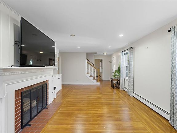 This classic New England style cape cod home has so much to offer. Three bedrooms, two have walk in closets. two full baths. The large living room has a beautiful fireplace flanked with custom bookcases, The kitchen has granite countertops, stainless steel appliances, and a center island. There is both a dining area with beams and a cathedral ceiling as well as a dining room. with a large custom buffet. Hardwoods floors throughout as well as tile in the kitchen and dining area. There is a large deck with access from the dining area. A gazebo in the backyard and the yard is fully fenced with a beautiful new cedar fence. And no neighbors behind you. Back inside, there is a walkout basement which has been partially finished complete with a wet bar. The house has oil heat and the addition of mini splits on the first floor. Great curb appeal with mature plannings completes this great home. The house is being sold as is.