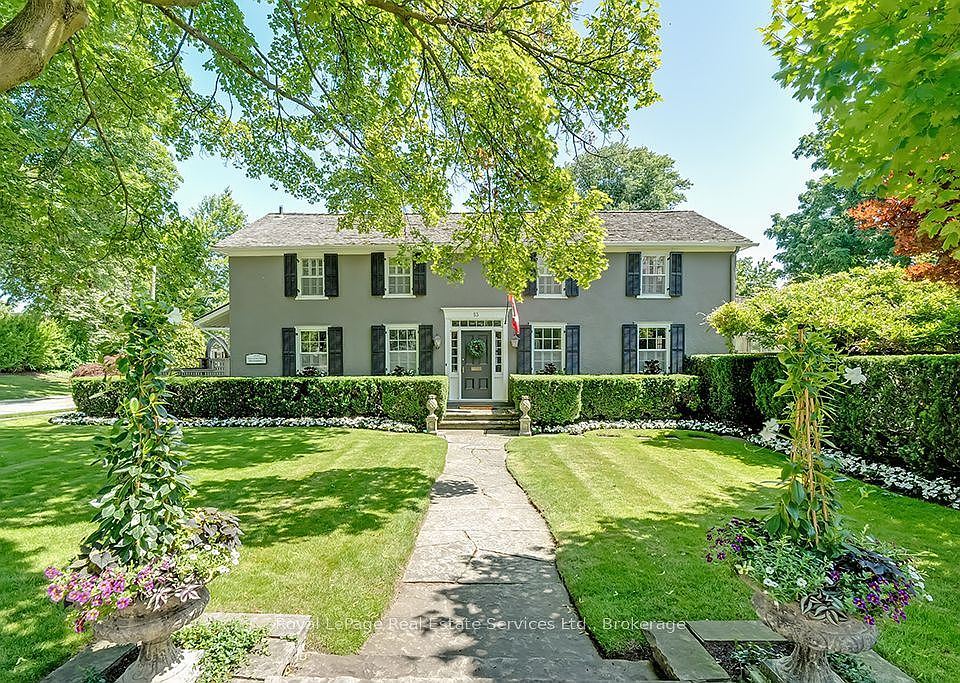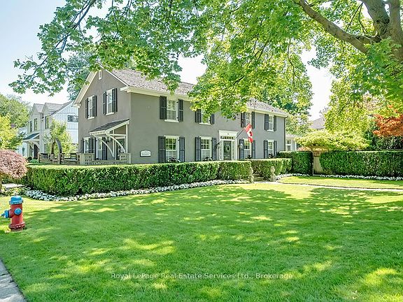 Nestled south of Lakeshore in the heart of Old Oakvilles historic district, this beautifully restored Georgian-style home, designed by Gren Weis, blends timeless character with modern updates. Steps from the lake, river, and vibrant Downtown, it offers an unmatched lifestyle location.The home boasts exceptional curb appeal with a flagstone path leading to a spacious foyer. Sun-filled interiors feature Farrow & Ball paint, new hardwood on the main level, preserved fir upstairs, smooth ceilings, and recessed LED lighting.The updated kitchen includes a large island, built-in appliances, and desk area. The dining room offers panelled walls, RH sconces, French doors to the garden, and plantation shutters. A charming living room features built-in bookcases, window seat, wood-burning fireplace, and walkouts to a sunroom overlooking the southwest garden and pool. A mudroom and stylish powder room complete the main floor.Upstairs are four bedrooms with ample closets and antique brass hardware. The primary suite offers custom built-ins and a renovated ensuite with heated Carrara marble floors and zero-threshold shower.The fully finished lower level (8 ceilings, slate flooring) adds living space with a media room, workout room, cedar closet, laundry, and storage. Updated mechanicals include a high-efficiency furnace, central AC, 100 AMP panel, irrigation. Cedar roof, new fencing, cobblestone driveway. Outside enjoy a private oasis with saltwater inground pool, brick patios, and landscaped gardens. Steps to the Lake, Oakville Club, Yacht Squadron, Library, Performing Arts Centre, Downtown, and top schools.