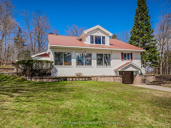 Welcome to the largest and most prestigious lot on Todholm Drive. This extraordinary home sits on what was three separate lots now deemed as one combining the home, garage and back lot for those wanting location, privacy and functionality all in one property. This Estate Sale combines over 4 acres of land with a 3000 sq foot home, detached oversized garage that is partially winterized and a rear forested area for added enjoyment. Just steps away from the public access to Lake Muskoka, the home features 5 bedrooms, three bathrooms, living room, recreation (games) room, kitchen, dining area, lower rec-room, tool room, office and indoor car parking. The new forced air propane furnace, central air conditioning, modern appliances and pool table are just a few of the many attributes. This original farmhouse has been added too and expanded on over the years combining a mixture of old, new, and renovated in one spectacular offering. Outside, surrounding the meticulously landscaped front of the property you will find paved and interlock driveways connecting the house, garage, barn and storage shed, with each structure well maintained and practical. The rear 2 acre portion of the property provides a number of connected trails for personal use or could be developed in accordance with R2 zoning. This unique Muskoka home and property is also on town water with its own back up well making this a uniquely functional package of land and private home, allowing for a personal residence, home based business or redevelopment opportunity. The possibilities are endless.