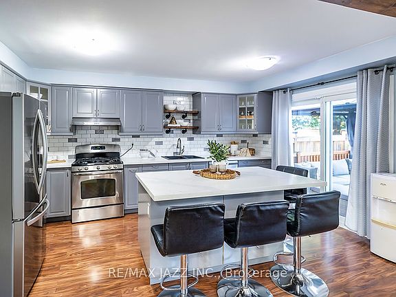 Quiet crescentOpen-concept main floorRenovated eat-in kitchenQuartz countertopsGas stoveStainless steel appliancesFully fenced backyard
