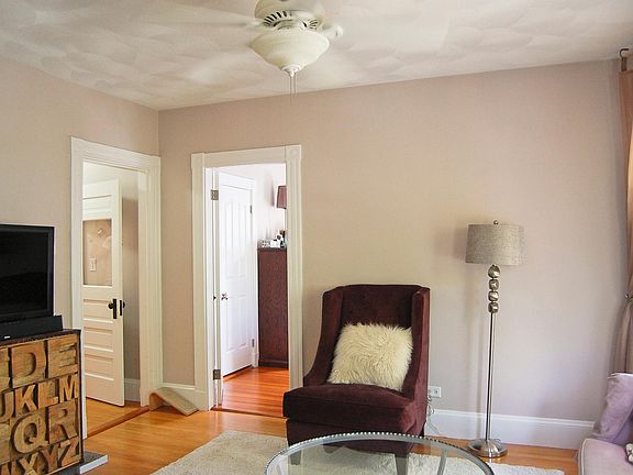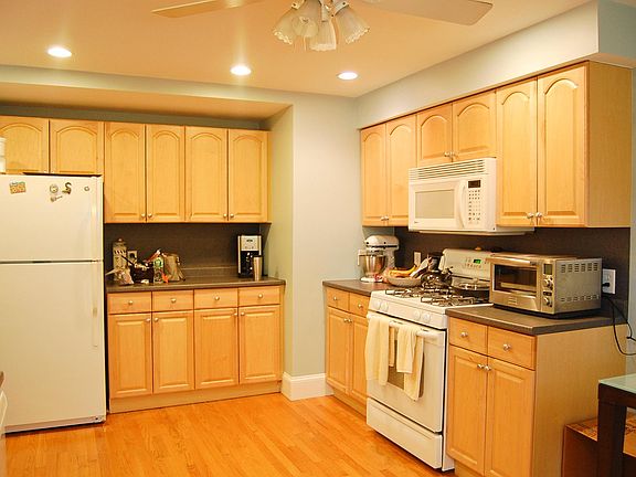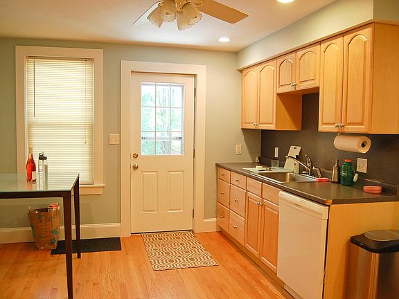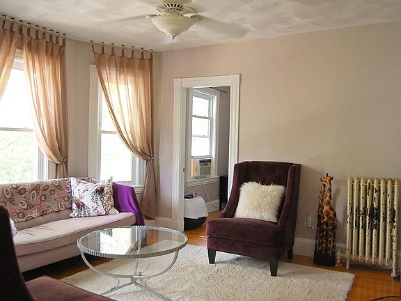 This unit is located on the 2nd floor and includes a spacious living area with lots of windows, an office with a closet off the living room, two good sized bedrooms, an updated bath, oversized eat in kitchen, and a back porch. Ceiling fans in every room! Fully applianced kitchen with refrigerator, dishwasher, microwave, gas stove, and disposal. Washer and dryer provided in basement, and storage space. Gas heat. Two off street parking spaces. All closets have built ins. This is a beautifully maintained unit! One block from Main Street with lots of amenities and public transportation. Available 6/1! Up front payments are first month, security deposit and broker's fee - 3 months total.