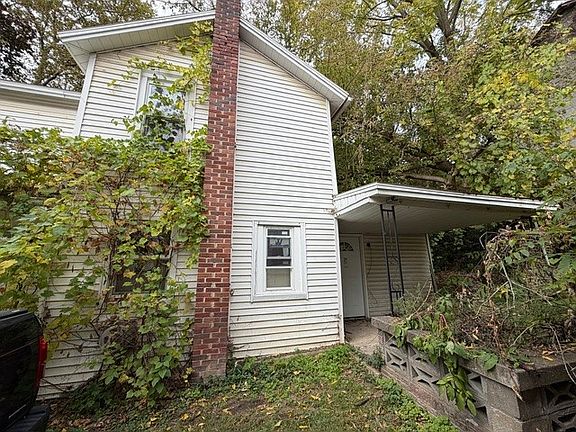 The property features a durable vinyl exterior and includes a detached one-car garage. While it requires substantial work, the project has already been jump-started with the installation of some new windows and some new drywall.