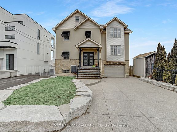 Ultra-Rare Lakefront Estate, Enjoy Direct Waterfront Living with Unmatched Investment Potential. Experience one of Ontarios most exclusive lakefront properties, an irreplaceable waterfront estate offering unobstructed views of Lake Ontario and the Toronto skyline from nearly every room. Spanning over 3,000 sq. ft. across five meticulously designed levels, this architectural gem is tucked between Fifty Point Marina and a sandy beach, surrounded by luxury custom homes on a private road. Every level boasts its own walk-out balcony, delivering breathtaking sunrises and golden-hour sunsets that make everyday living feel like a private yacht cruise. Whether you're seeking a luxury primary residence, a serene seasonal escape, or a high-yield short- or long-term rental, this property delivers. Step into a chefs dream kitchen featuring quartz countertops, a stunning waterfall island, and premium built-in appliances. Elegant hardwood floors, a floating maple and glass staircase, and a sleek electric fireplace create an elevated ambiance throughout. The spacious primary suite is a sanctuary, complete with a spa-inspired ensuite featuring a jacuzzi tub and modern floating vanities.The newly finished lower level (2021) offers a versatile fourth bedroom or recreation space with a full bathroom ideal for guests or additional rental income. Enjoy direct lake access for paddle boarding, kayaking, or swimming, and unwind in your private hot tub under the stars.Located just minutes from the QEW, future GO station, Costco, renowned wineries, and farm-fresh markets, this home is perfectly positioned for both convenience and escape. Freehold lakefront properties of this caliber are extremely rare, making it an exceptional opportunity for Canadian or international investors seeking a high-appreciation asset with strong income potential.