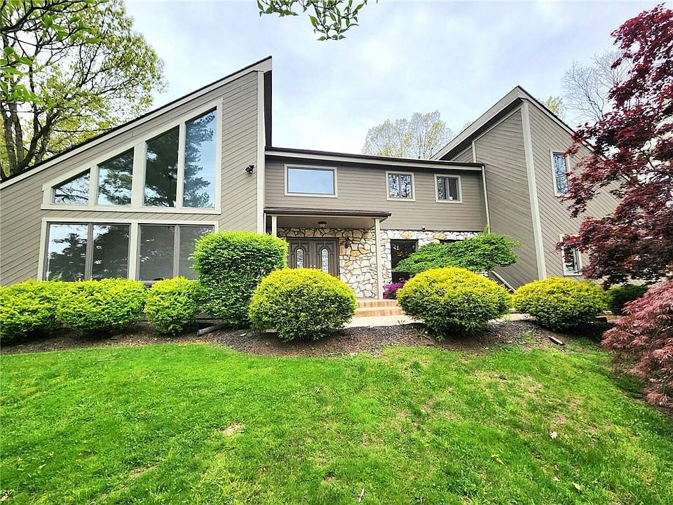 Architecturally Exciting 4000 sq ft custom contemporary blending modern design with ultimate comfort. Easy living floor plan offers soaring vaulted ceilings, skylights, a statement bridge, a gourmet kitchen with imported Italian tile flooring, and a wet bar station for elegant entertaining (there is also a wine cellar). Grand Dining Room, step-down Formal Living Room, huge Family Room with cozy pellet stove. The primary ensuite on the main floor includes a newly remodeled Bath with an oversized full glass shower enclosure. 3 very generous bedrooms upstairs each w multiple closets, one bedroom with ensuite. The backyard is a gorgeous tranquil oasis with an inviting inground pool, extensive paver patio, mature flowering trees including Japanese Maples, flowering Cherries, Dogwood and more. 5 Zone heat. Home is at the end of the road with no through traffic. Close to shopping, golf courses, ski resorts, wineries, breweries, designer outlets, lakes, wonderful restaurants and NYC-bound buses and rail. One-year American Homeshield Warranty Additional Information: HeatingFuel:Oil Above Ground,ParkingFeatures:2 Car Attached,