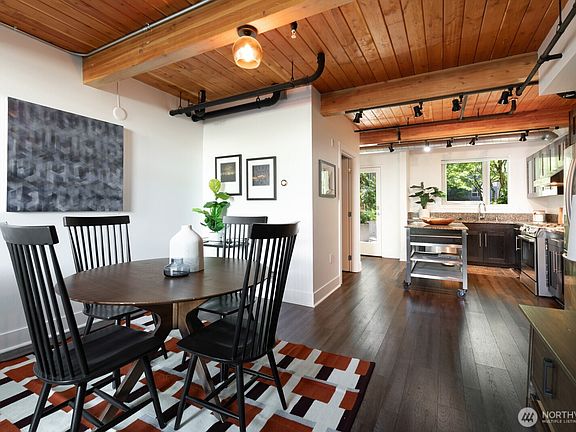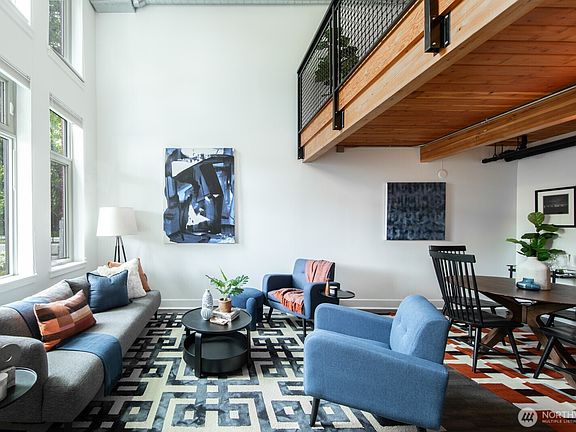 Live in the heart of Capitol Hill at BRIX. This stylish lofted condo offers a private, walk-up entrance and an ideal layout for flexible living. The main level features a comfortable living and dining area, modern kitchen, half bath, and direct access to the building’s lush, peaceful courtyard. Upstairs, a versatile loft space makes a perfect office or home gym, with the bedroom and full bath tucked quietly behind. Floor-to-ceiling windows bring in great light. Enjoy the convenience of a designated garage parking spot and extra storage. BRIX amenities include secure entry, bike storage, and a rooftop deck with BBQs and city views. With a Walk Score of 97, you're close to dining, coffee, groceries, and light rail.