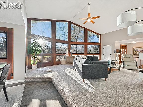 Stunning 5-Bedroom Ranch on the Desirable Westside – Mountain-Like Living with Pikes Peak Views! Welcome home to this beautifully appointed 5-bedroom, 4-bathroom rancher set on a 1/3-acre, tree-filled lot that offers the serenity of mountain living while still being in town. Located in the sought-after D20 school district, this home features a 3-car garage, exceptional outdoor space, and a layout designed for comfort and entertaining. Step into the inviting living room, where vaulted ceilings and floor-to-ceiling cathedral windows flood the space with natural light and frame stunning views. The adjacent family room offers a cozy gas fireplace creating the perfect spot to unwind. The well-equipped kitchen features granite countertops, stainless steel appliances, a gas stove, double oven, recessed lighting, and durable LVP flooring—ideal for everyday cooking and hosting alike. Your private master suite features an en suite bathroom, a spacious walk-in closet, and direct walk-out access to the expansive back deck. The huge deck stretches along the rear of the home, providing an exceptional outdoor living area perfect for entertaining, relaxing, or soaking in the views of Pikes Peak. Downstairs, the finished basement offers even more space with a wet bar, 2 bedrooms, and a ¾ bathroom—ideal for guests, multigenerational living, or a private retreat. With its peaceful setting, mature trees, and thoughtful upgrades throughout, this westside gem blends convenience, comfort, and Colorado beauty. Don’t miss your chance to make it yours!