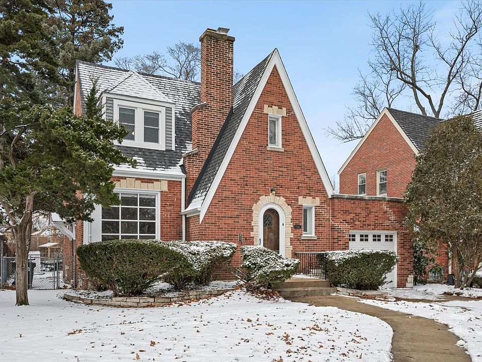 Charming Brick English Tudor, ideally located near beautiful downtown Riverside. This home beautifully blends vintage charm with modern updates, creating a perfect fusion of comfort and style. As you step inside, the elegant front door and two coat closets lead you into a spacious living room featuring gleaming hardwood floors, a cozy fireplace, and custom architectural arches. This opens to the dining room, where large windows offer picturesque views of the inviting backyard. The kitchen retains its vintage character with classic tile work, while offering ample space for a table or island. It's equipped with newer stainless steel appliances and includes a convenient walk-in pantry.