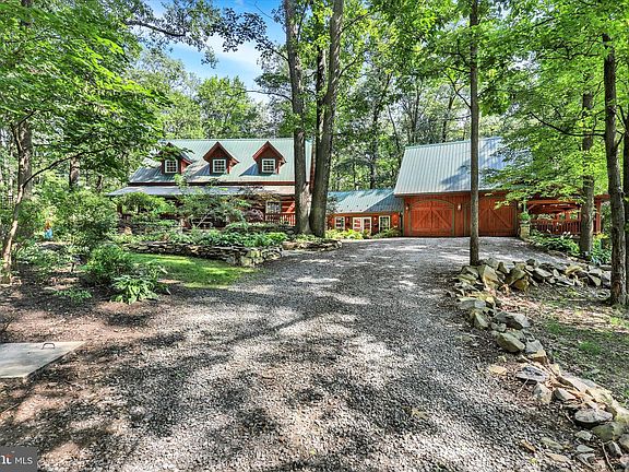 Spectacular timber-framed and log home situated on a nicely landscaped 2.65 acre wooded lot. Home custom built using local timber, cut and milled on-site, modeled after a 1750’s style German log home, complete with hand-made oak Shaker cabinetry, Eastern Hemlock logs, and solid Red Elm exterior doors from the Gettysburg Battlefield. Open floorplan features cathedral ceilings, interior balcony, huge kitchen with oak-top island, first-floor bedroom, wood floors, upstairs owner suite with jacuzzi tub, and 3rd bedroom with a loft. Guest quarters offer a spacious separate living space connected by the cozy breezeway with window views of the surrounding nature. Meticulously landscaped entryway and rear koi pond is highlighted by stone acquired from the property. Multiple outbuildings to include a wood/tool shed, storage shed, and the old sawmill suitable as a 2-car garage. Dual heat sources include outdoor wood boiler and propane. Old boiler serves as distribution center for new unit. Mini splits in guest quarters offer heat and air. New septic tank will be installed prior to settlement. Private lane to this beautiful piece of wooded paradise with state forest nearby is a nature lover’s paradise. Request a private tour of this home to truly appreciate the opportunity.